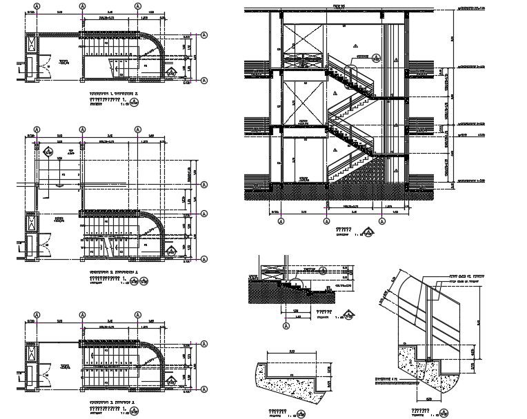 The Staircase plan and sectional elevation drawing shows 10X50 mm painted steel, 6X50 mm painted steel floor plan Go up to 3 level stair extension type, expanded view and has detail of rise and trade step, RCC slab. download staircase CAD drawing DWG file.