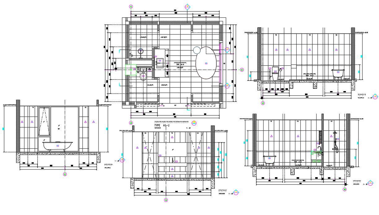 Master Bathroom Plan And Sectional Elevation Drawing DWG File