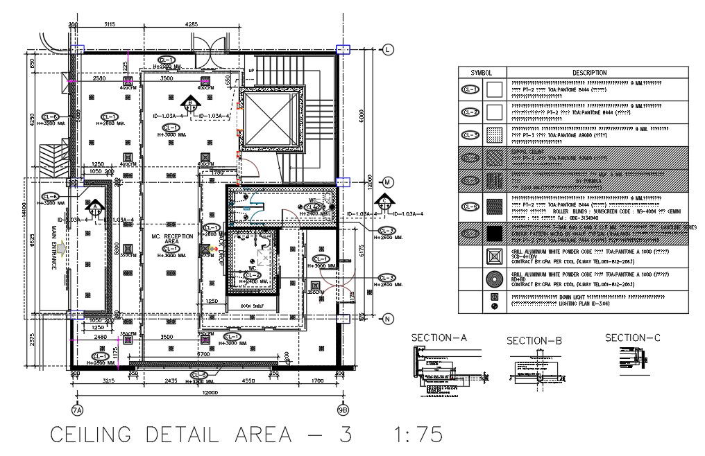 Office Ceiling Layout plan With Description CAD Drawing