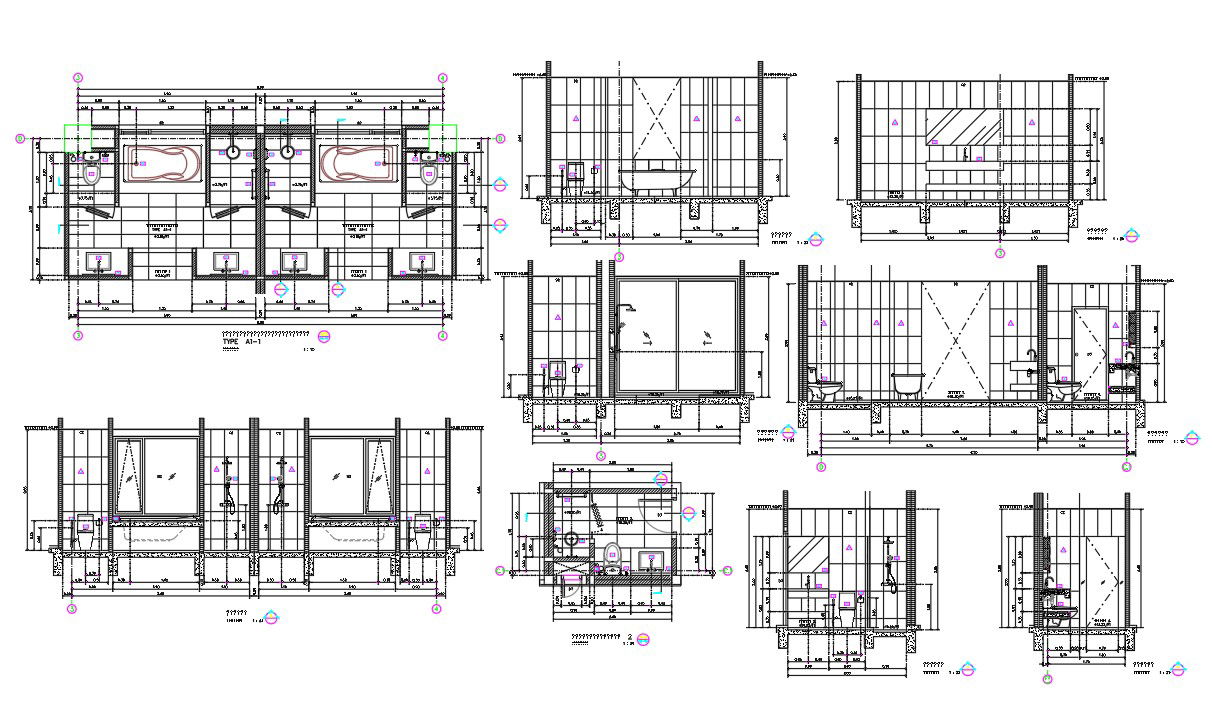 Master Bathroom Floor Plan And Section Drawing DWG File