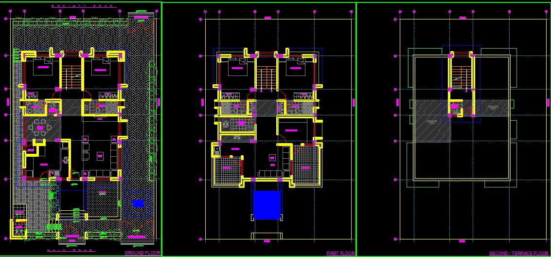 Layout Plan of Bungalow CAD Drawing in AutoCAD for Architecture