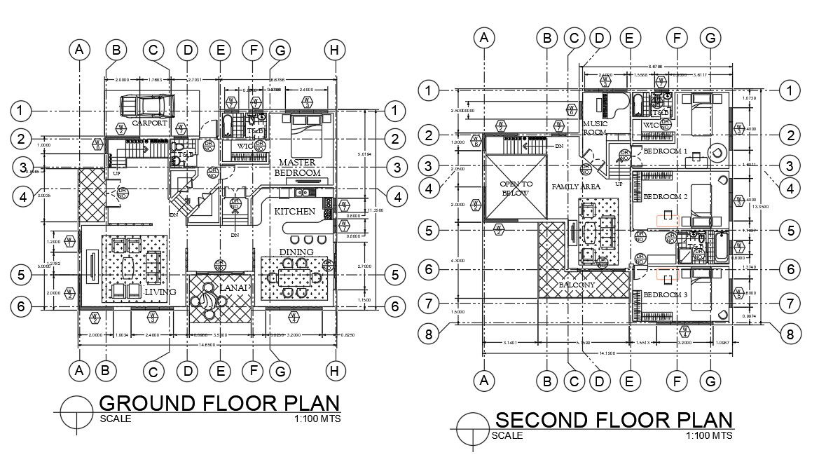 Centre line drawing plan of residence project given in this 2d autocad drawing. Download 2d autocad drawing DWG file.