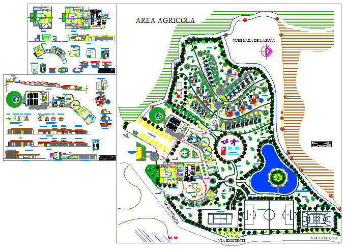 Here the architectural proposed Resort design with all necessary requirement. Restaurant,Snack bar , Bar, Fitness center, Simple bungalow design, His elevation section drawing, Waterfall detail drawing, and also landscaping design in this drawing.