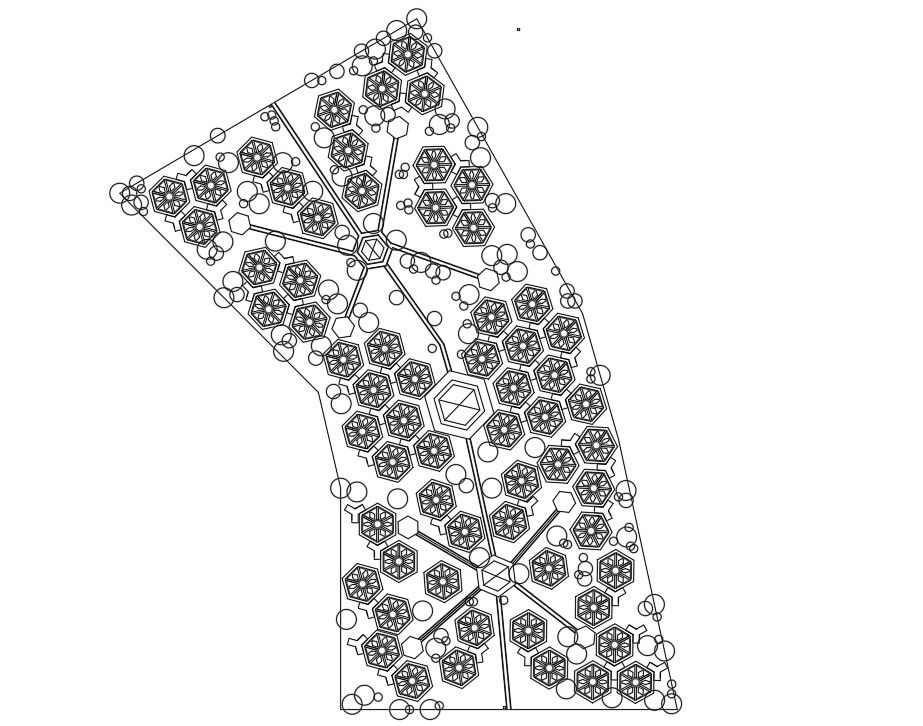 AUTOCAD Drawing gives the layout of basic landscaping file. Hexagon pattern metal structure gives in this layout planning and three junction also indicated. In this drawing you will have several trees also.This is very useful drawing.Download the Auto Cad 2D DWG file.