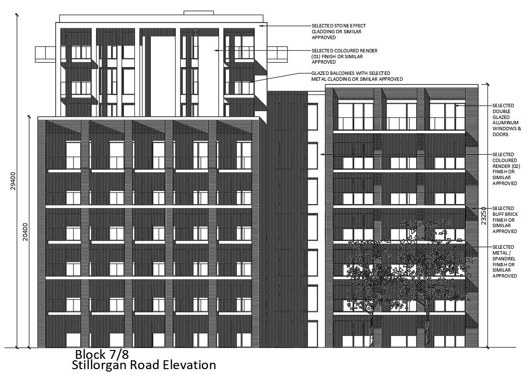 Block 7 of the Road elevation of the hospital building is given in the 2D Autocad drawing file. The measurement of each floor is given in this drawing file. The height of the first seven floor is 23.25m height. Another six floor height is 20.4m height. Above parapet wall height is 9m. Tress are planted one side of the building and in front of the building. Stone effect cladding, colored render, double glazed aluminium windows and doors, buff brick and metal spandrel has approved. Thank you for downloading the autocad file and other cad program files from our cadbull website.