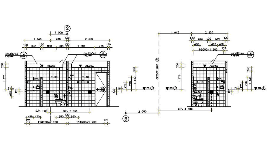 Toilet details of hospital building is given in the Autocad 2D DWG drawing file. Water closets, tap, shower, stop valve, mixing valve, doors, lights and pipe lines were specified with the measurements. All dimensions are given in the mm. Thank you for downloading the autocad file and other CAD program from the our cadbull website.