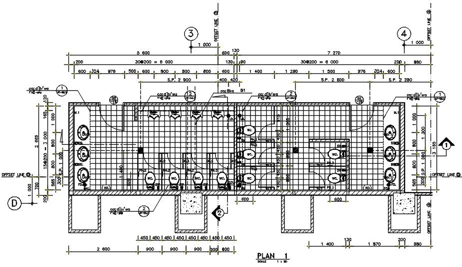 Toilet details were given for the ground floor of hospital building is given in this Autocad DWG drawing file. There are two separate toilets were provided for male and female. For male urinal, water closets and lavatory are provided. For female water closets and lavatory provided. Thank you for downloading the autocad file and other CAD program from the our cadbull website.