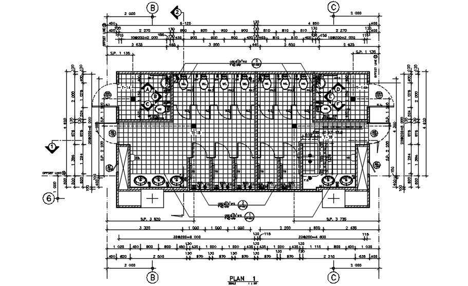Toilet details of the hospital building (second floor) angles has given in the Autocad DWG drawing file. Sanitary drain, Floor drain, tube light, lavatory, child tub, water closets, shower and doors are specified at this floor. It is common toilets for visitors. Other details were given clearly in the drawing file and layout. Thank you for downloading the Autocad file and other program file from our website.