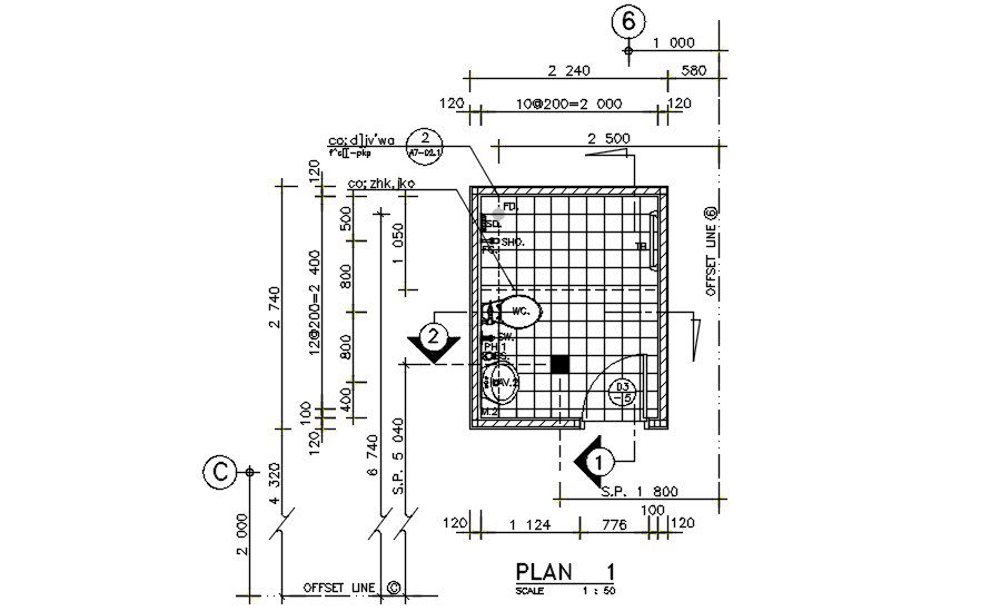 Toilet plan of the hospital building is given in this Autocad DWG drawing file. Door openings are provided to the inside directions of toilet. Dimensions are given clearly with the mm. water closets, lavatory, water tap and shower are mentioned in this drawing file. Download the Autocad 2D drawing file. Thank you for downloading the Autocad file and other program file from our website.