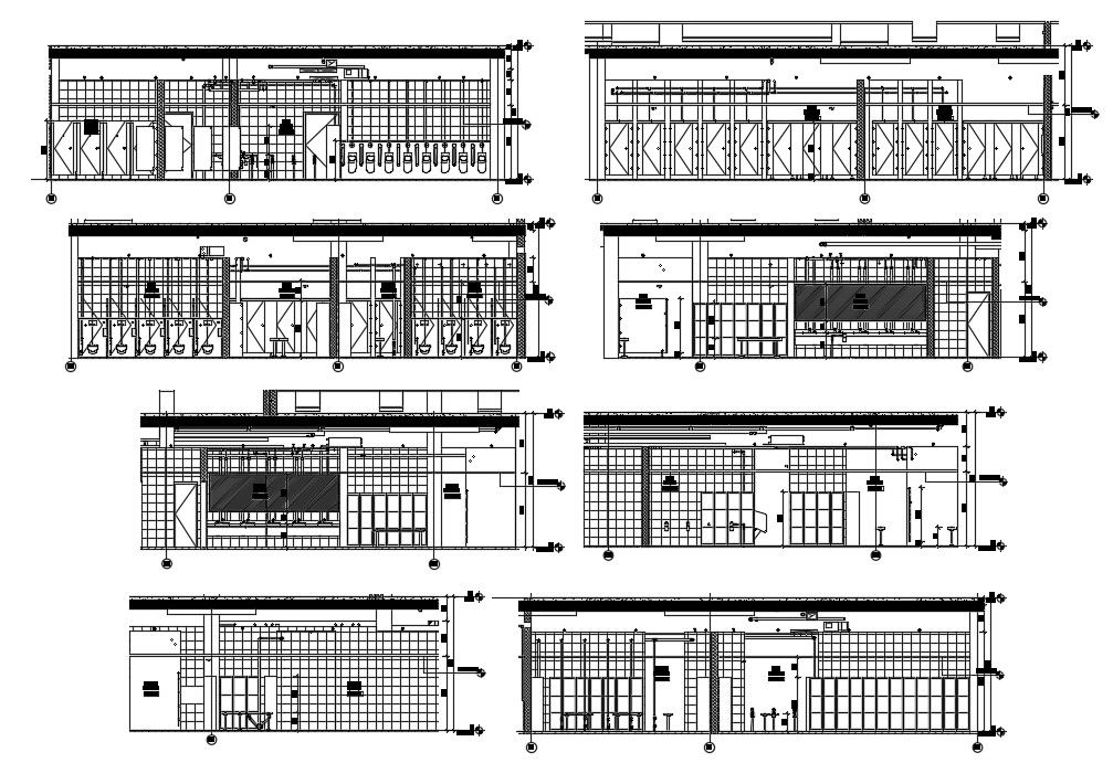 Interior elevation and staff toilet details of the hotel building is given in this 2D Autocad DWG drawing file. Download the Autocad DWG drawing file.