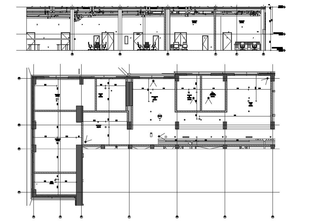 Office ceiling plan and interior elevation of the mezzanine of hotel building is given in this 2D Autocad DWG drawing file. Download the Autocad DWG drawing file.