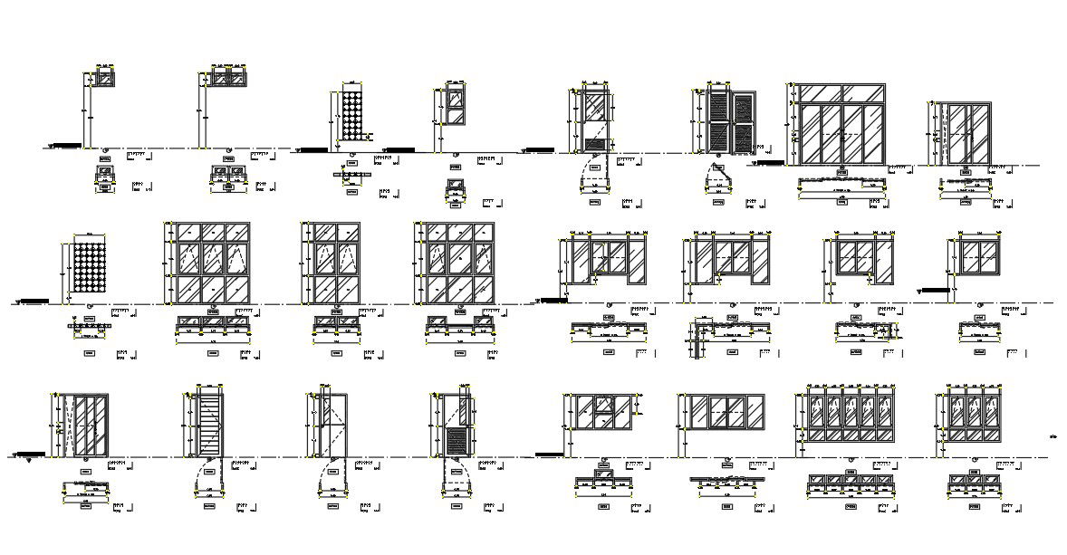 The AutoCAD 2D plan specifying the sectional details of window panel and door specification in a indoor sport club. Download dynamic blocks of doors, windows, stained-glass windows in DWG format.frontal Prespective model is enumerate in this AutoCAD DWG. Download the AutoCAD 2D file from our website.