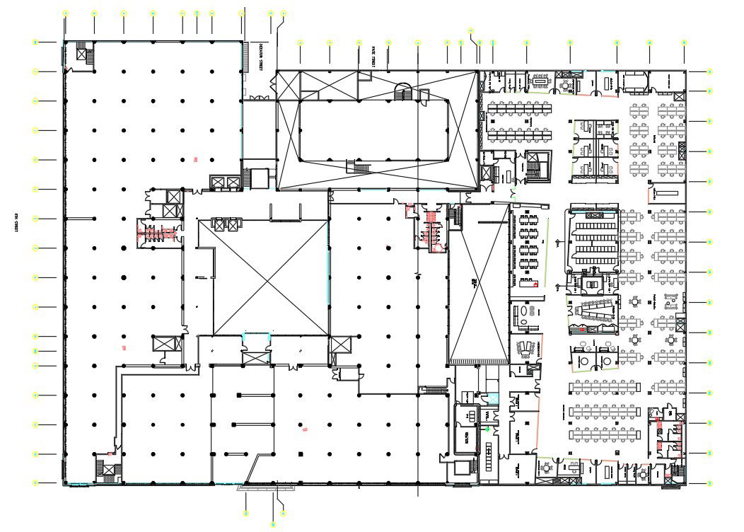 AutoCAD 2D construction plan of a office building including Architectural plan Download the AutoCAD 2D file.