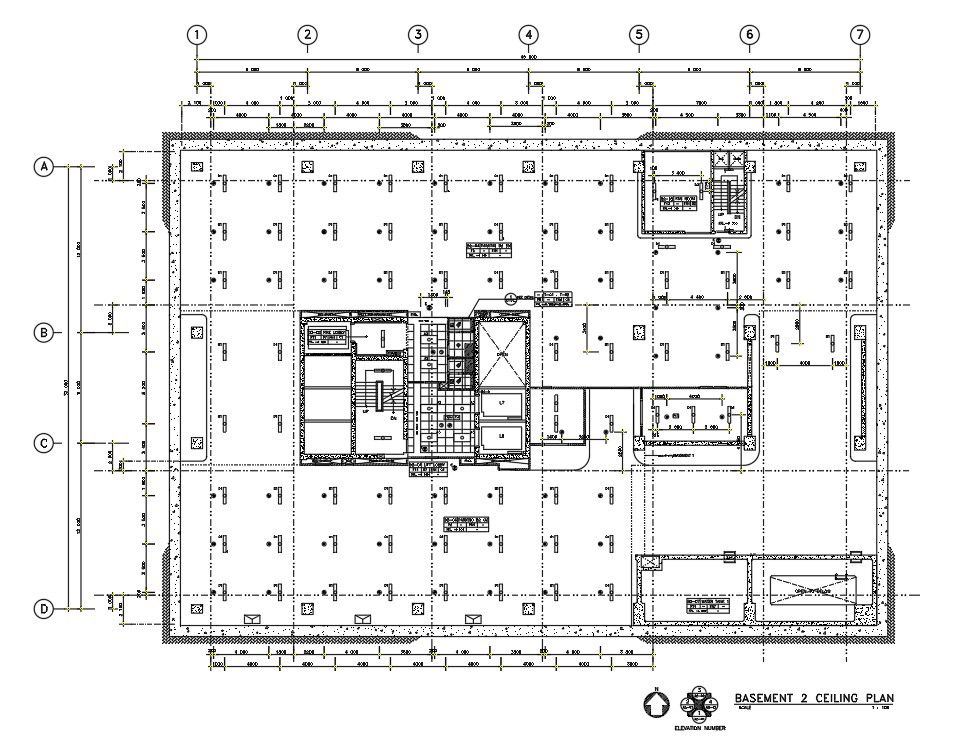 Basement ceiling plan of the hospital building is given in the autocad dwg drawing file. Download the Autocad DWG drawing file.