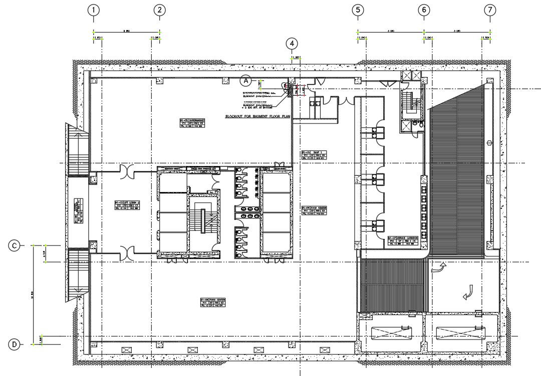 Block out for basement floor details of the hospital building is given in this 2D Autocad DWG drawing file. Download the Autocad DWG drawing file.