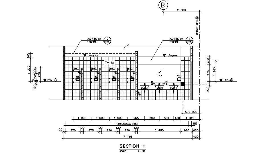 Section detail of general toilet drawing given in this file. Download this 2d autocad drawing dwg file.