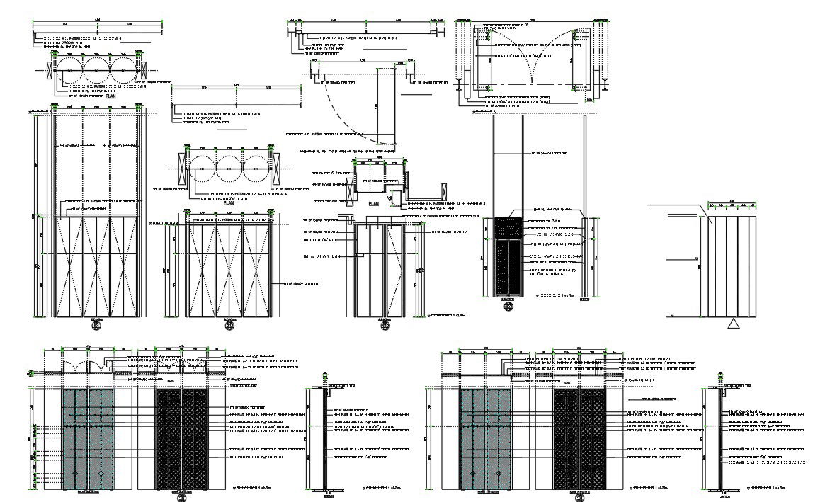AutoCAD Drawing of the section and elevation plan of the Double doors.Download the Autocad DWG 2D file.