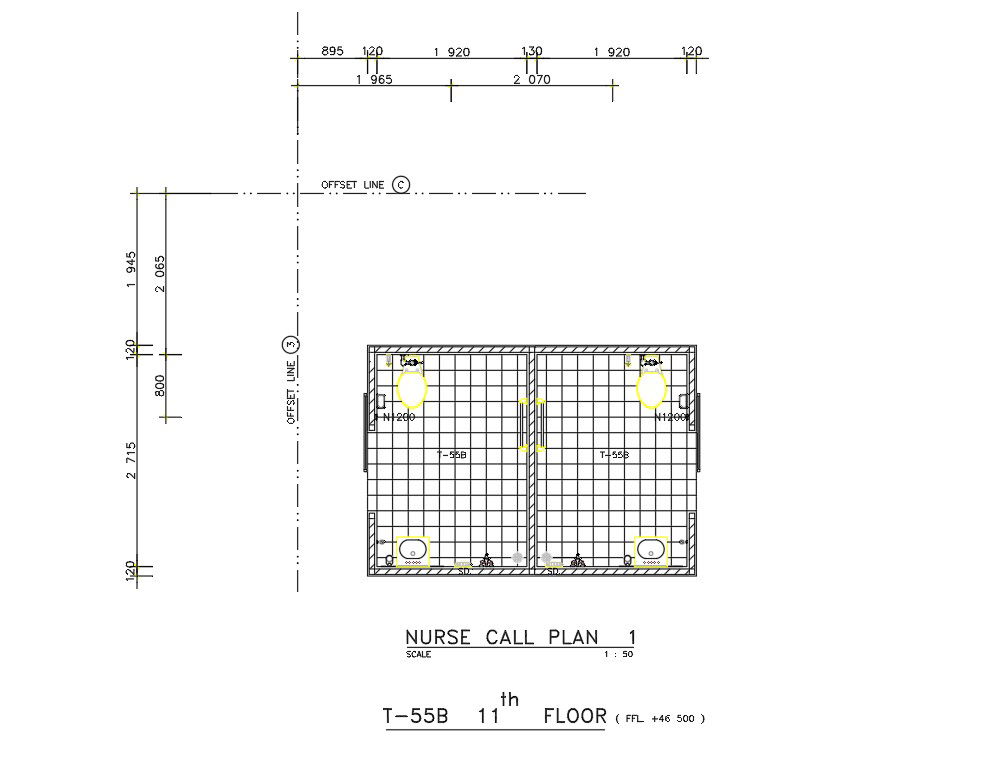 The typical floor plan of the hospital building toilet is given in this 2D Autocad DWG drawing file. Two toilet rooms are provided for the nurse. Both toilets door openings are given outside direction. Dimensions like length, breadth, and depth were given clearly. Download the Autocad DWG drawing file. Thank you for downloading the Autocad file and other program files from our website.