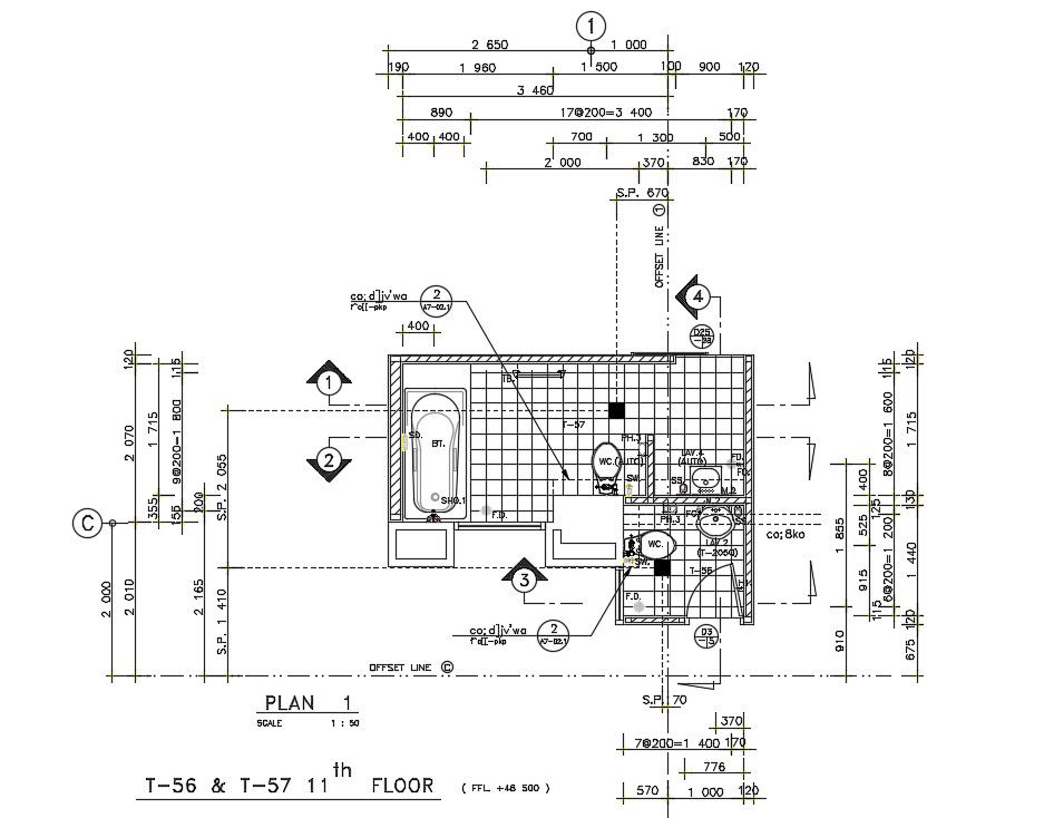 Residential master toilet and common toilet floor plan are given in this 2D Autocad DWG drawing file. Two toilet rooms are provided in this drawing. washbasin, bathtub, western toilet, and shower block are given. Dimensions like length, breadth, and depth were given clearly. Download the Autocad DWG drawing file. Thank you for downloading the Autocad file and other program files from our website.