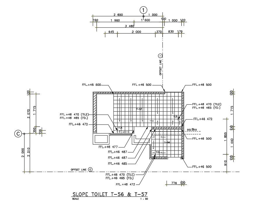 Slope toilet room section details are given in this 2D Autocad DWG drawing file.Download the Autocad DWG drawing file.