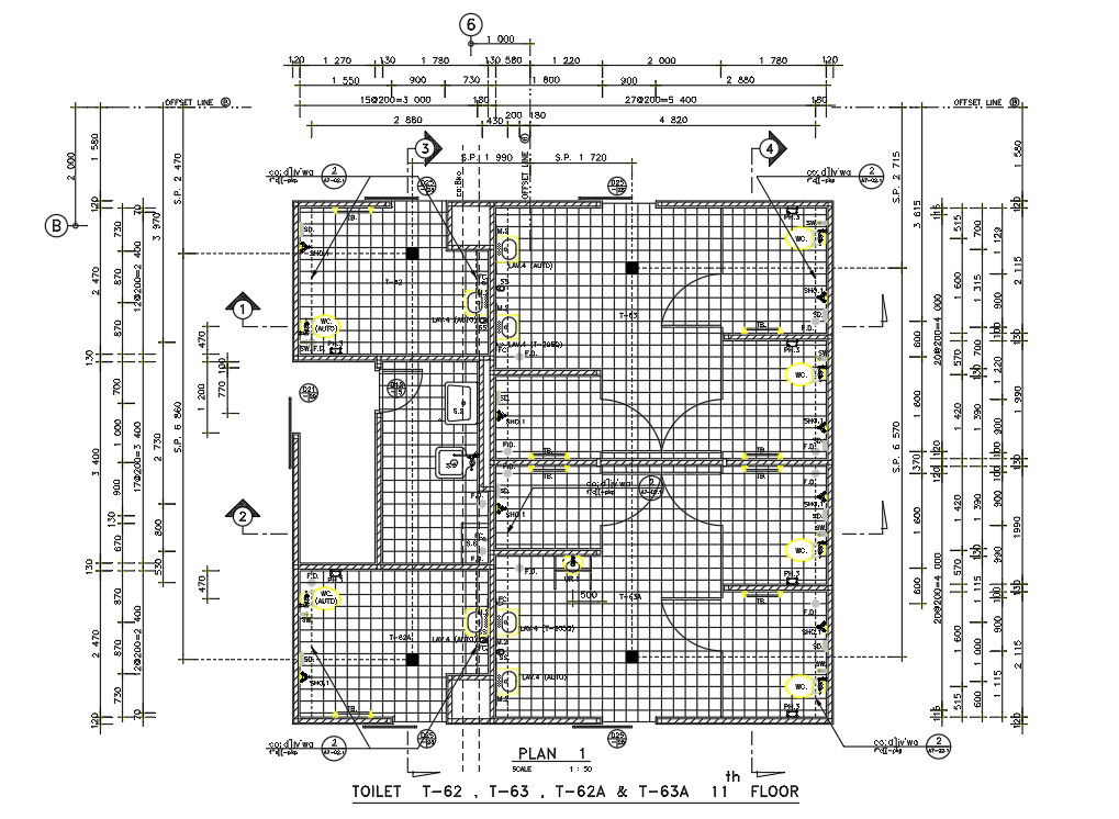 Typical section details of the toilet room are given in this 2D Autocad DWG drawing file. Download the Autocad DWG drawing file.