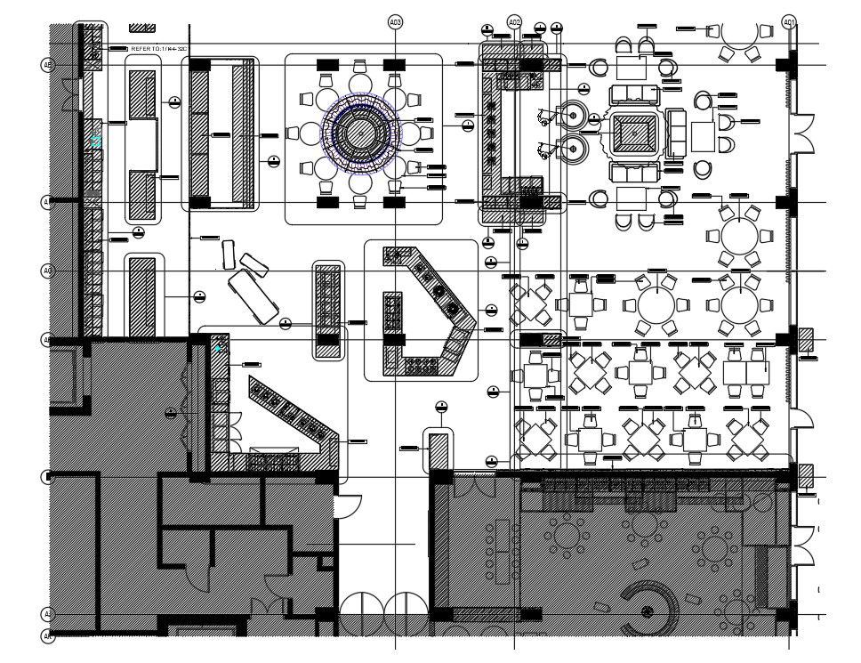 Furniture and Joinery details of hotel building plan is given in this 2D Autocad DWG drawing file. In this drawing file different shapes of the dinning tables are given. Buffet systems were provided in side the dinning. Thank you for downloading the autocad 2D DWG drawing file and other CAD program files from our website.