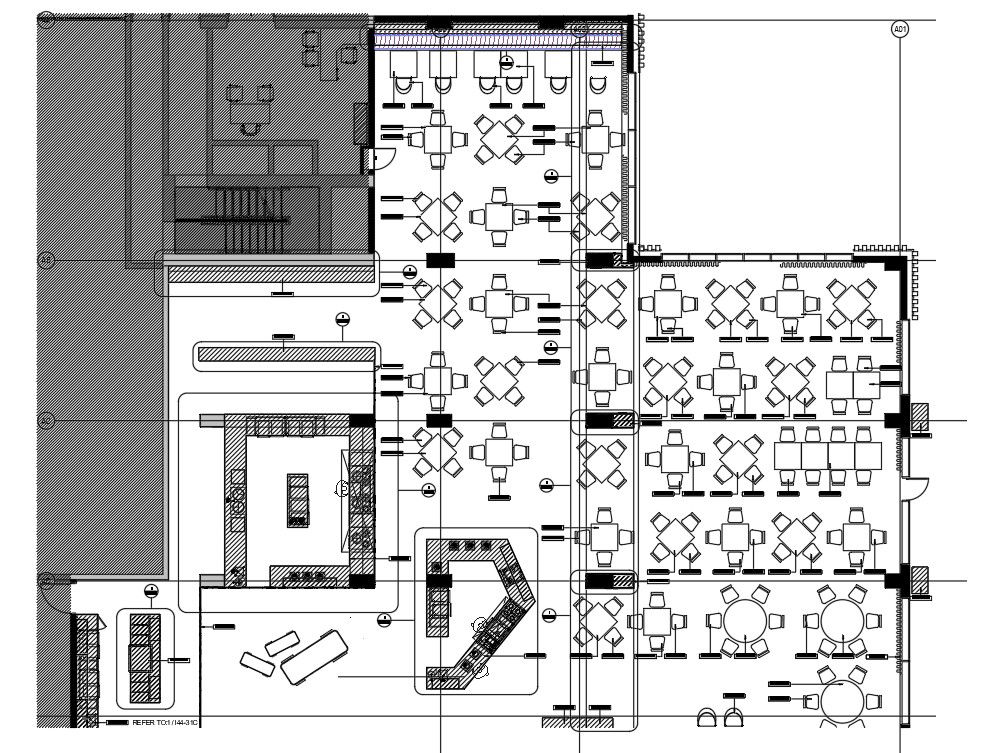 Joinery and furniture details of hotel and resort plan is given in this 2D CAD DWG drawing file. The name of the hotel is all day dinning. Required furniture’s are provided at this floor. Furniture’s like dinning sets, buffet sets and light setting etc., Thank you for downloading the autocad 2D DWG drawing file and other CAD program files from our website.