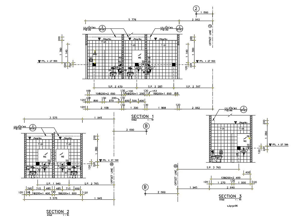 Elevation detail is given in this AutoCAD drawing file. this section detail made by 1:50 scale with all dimensions and sanitary block detail. in this file you will have wall tiling detail also.it can be used for architecture drawing. download this 2d Autocad drawing file.