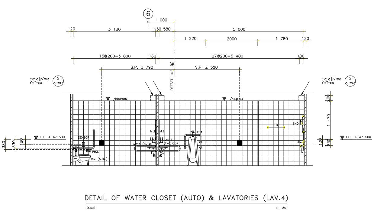 Detail of water closets(Auto) and lavatory is given in the Autocad DWG drawing file. Download the Autocad DWG drawing file.