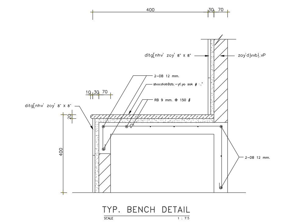Typical bench details of toilet is shown in the form of 2D Autocad DWG drawing file. Length and breath of bench is 400x400mm. Other details are given in the drawing file. Download the Autocad Drawing file. Thank you for downloading the Autocad 2D DWG drawing file and other CAD program files from our cadbull website.