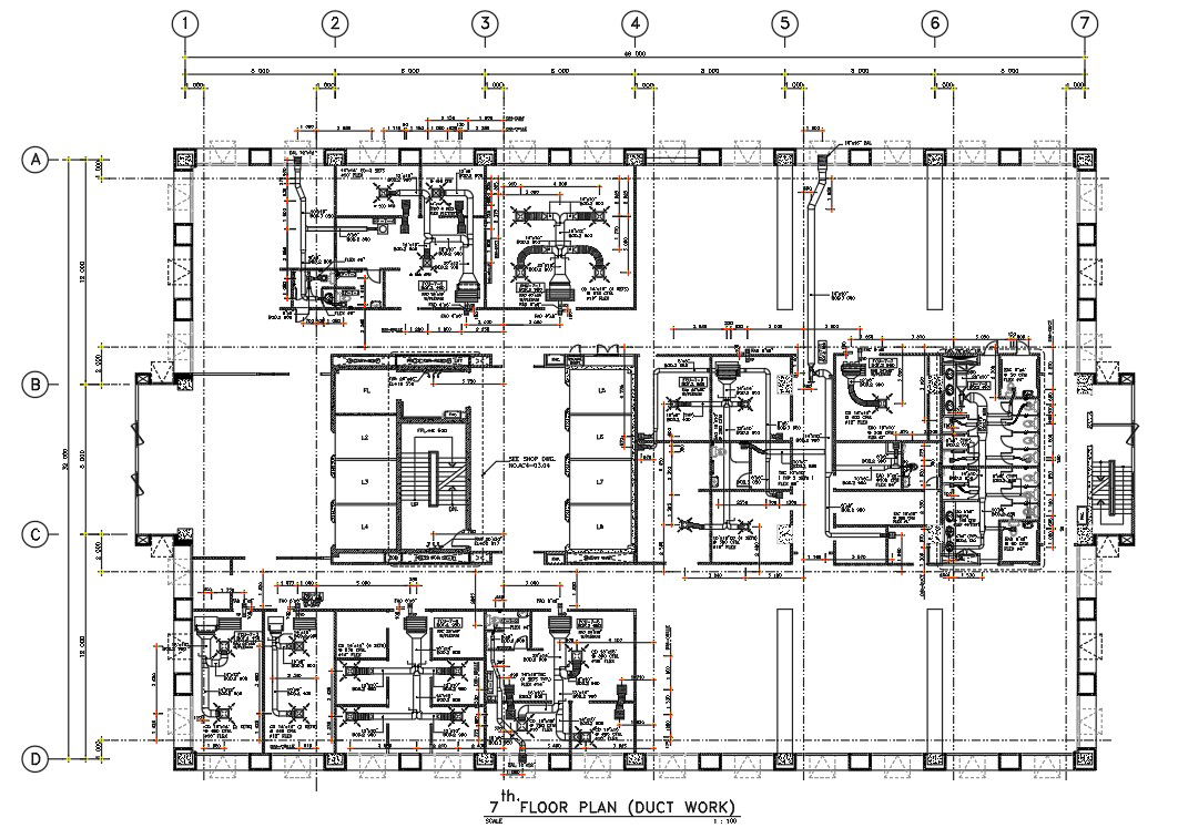 Duct work details of hospital building is given in this2D Autocad DWG drawing file. Duct is conduits, or tubes, that typically form part of a ventilation system, used to convey air throughout a building. An example of a simple elementary duct is a fireplace chimney, used to convey smoke to the outside. Hard pipes used to transfer water or gas are not classed as ductvwork. Thank you for downloading the Autocad 2D DWG drawing file and other CAD program files from our cadbull website.