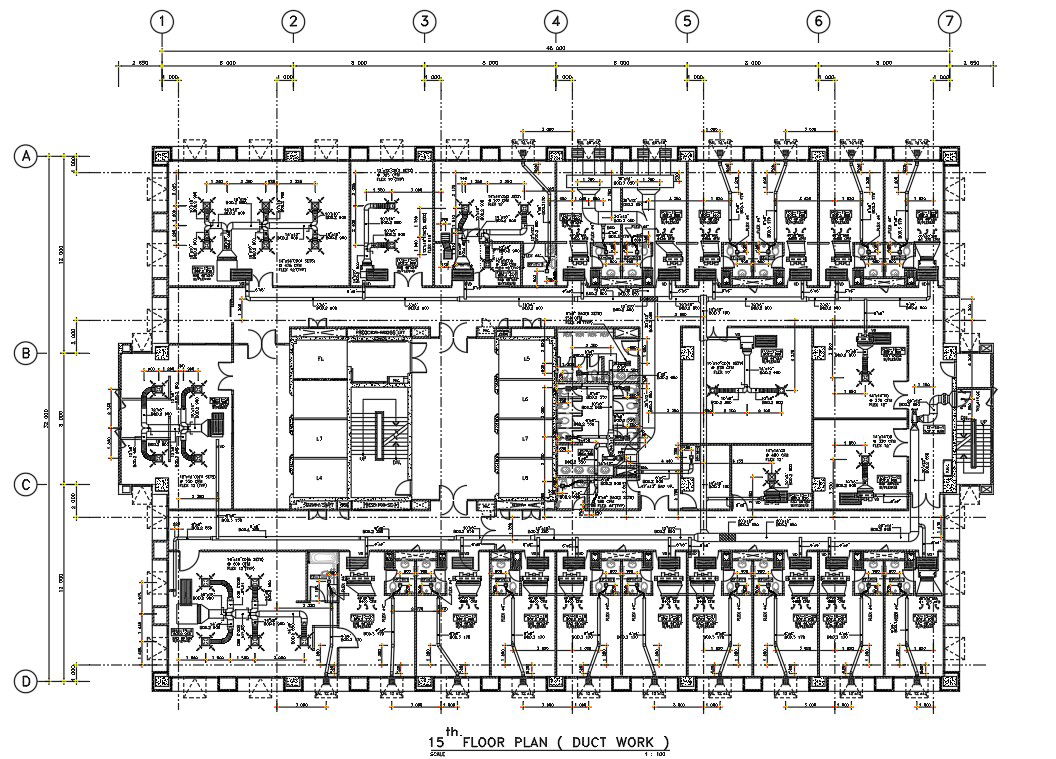 Details of duct work in hospital building plan has given into the form of Autocad dwg drawing file. Download the Autocad DWG drawing file.