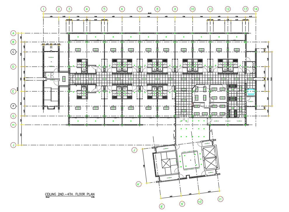 2D CAD DWG Drawing file shows the details ceiling plan of hospital building. A ceiling is an overhead interior surface that covers the upper limits of a room. It is not generally considered a structural element, but a finished surface concealing the underside of the roof structure or the floor of a story above. Length and breadth is mentioned in this drawing file. For more details download the autocad DWG drawing file. Thank you for downloading the Autocad DWG drawing file and other CAD program files from our cadbull website.