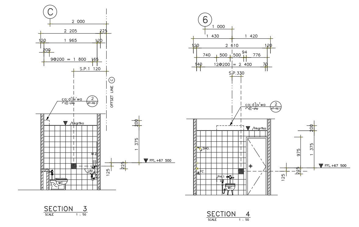 Elevation detail is given in this AutoCAD drawing file. this section detail made by 1:50 scale with all dimensions and sanitary block detail. in this file you will have wall tiling detail also.it can be used for architecture drawing. download this 2d Autocad drawing file.