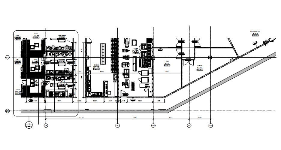 Hotel basement floor plan design is given in this AutoCAD Drawing. Download the AutoCAD 2D DWG file.