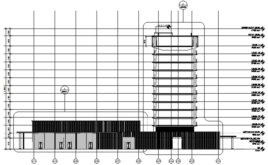 2D AutoCAD DWG Drawing file shows the Stilt + 10 south side Elevation of the hotel building is given. In this file, the staircase, circulation hall, and windows were clearly shown. Section details are given clearly in this drawing. Download the AutoCAD DWG file now. Thanks for downloading the file and another CAD program from our website.