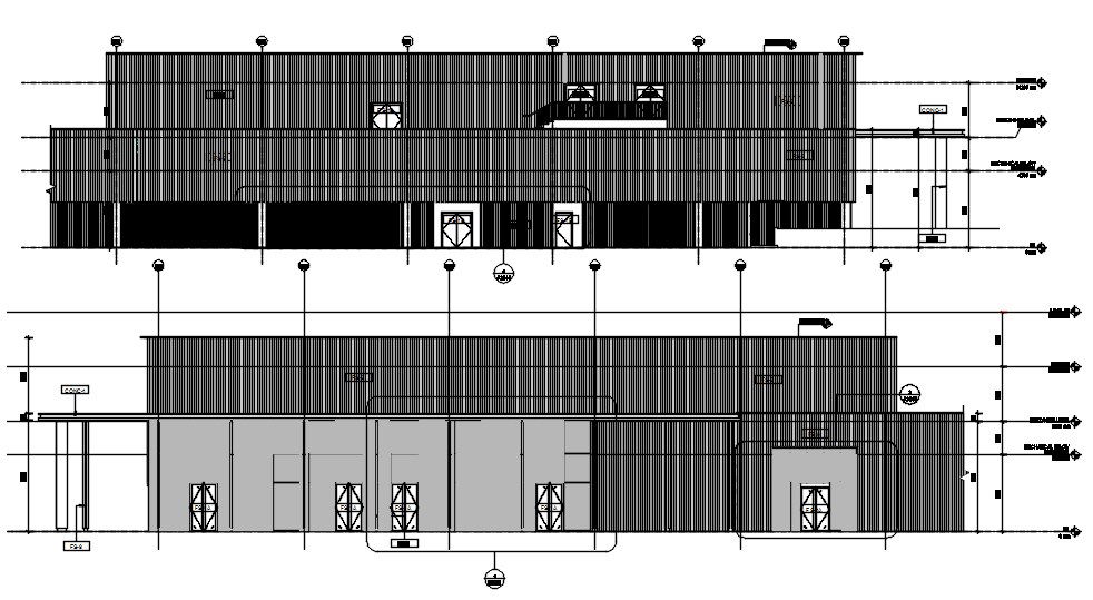 North and south part Elevation details of the restaurant building are given in this AutoCAD DWG 2D Drawing File. Download the AutoCAD DWG file now.