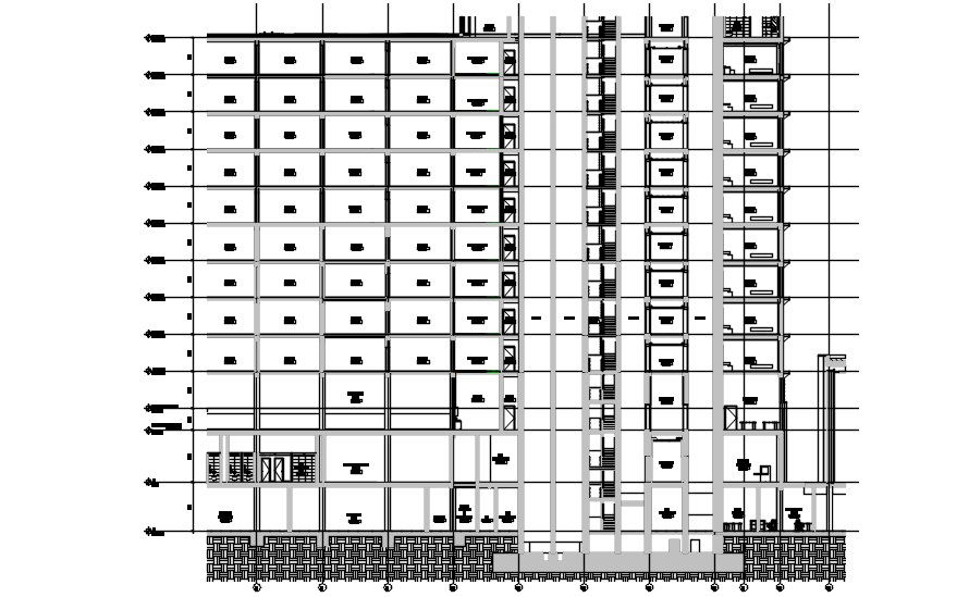 G +12 Hotel building part section plan details are given in this AutoCAD Drawing File. Download the AutoCAD DWG file now.