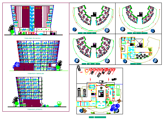 Here the Architectural based 5 Star Hotel design project with plan his All side elevation Section and all floor plan detail and section available in this cad file.