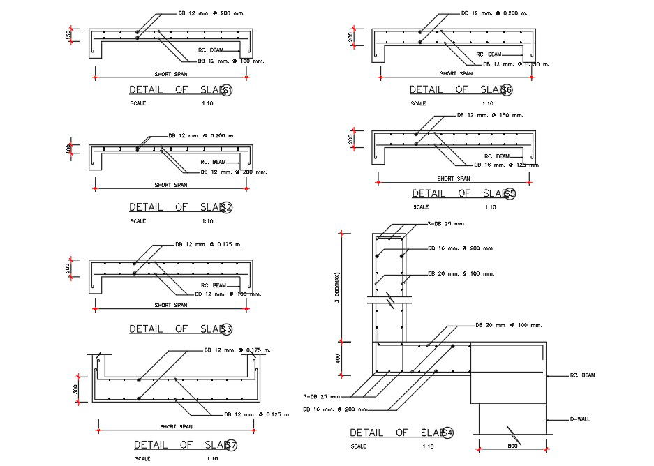 RC Beam sectional slab details are given in this AutoCAD DWG 2D Drawing File. Download the AutoCAD DWG file now.