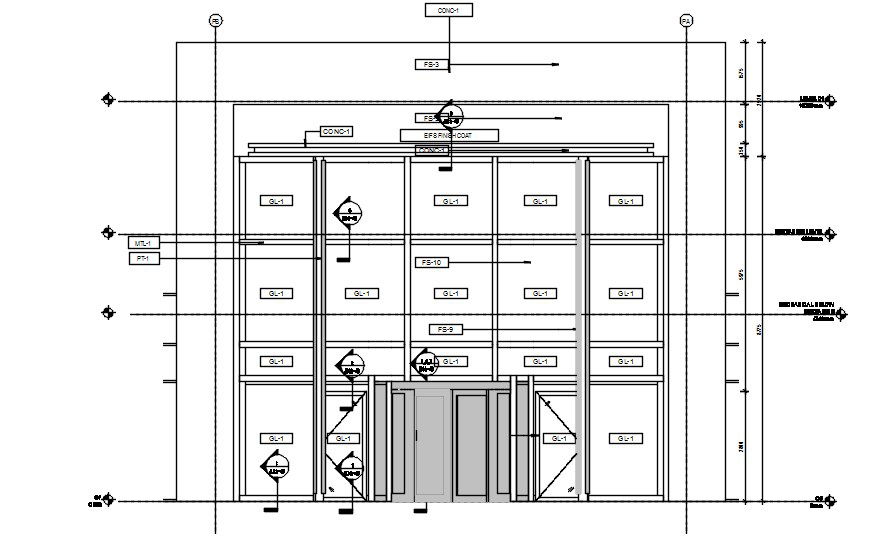 Facade system elevation details of the building are shown in this AutoCAD DWG 2D Drawing File.Download the AutoCAD DWG file now.