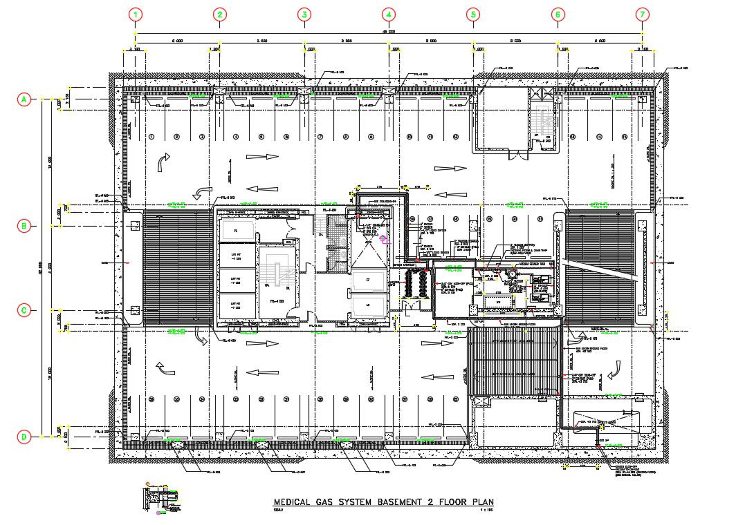 Medical gas system of basement 2 floor plan of hospital building details are given clearly in this autocad DWG drawing file. Download the Autocad DWG drawing file.