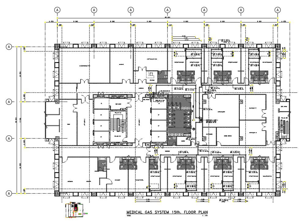 15th floor of First floor medical gas system of hospital building is given into Autocad DWG drawing file. Download the Autocad DWG drawing file.