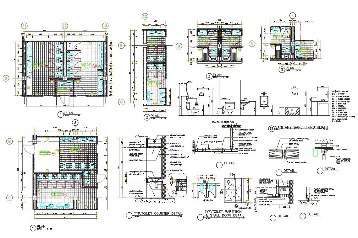 Public Toilet Plan With Sanitary Ware Fixing Drawing DWG File
