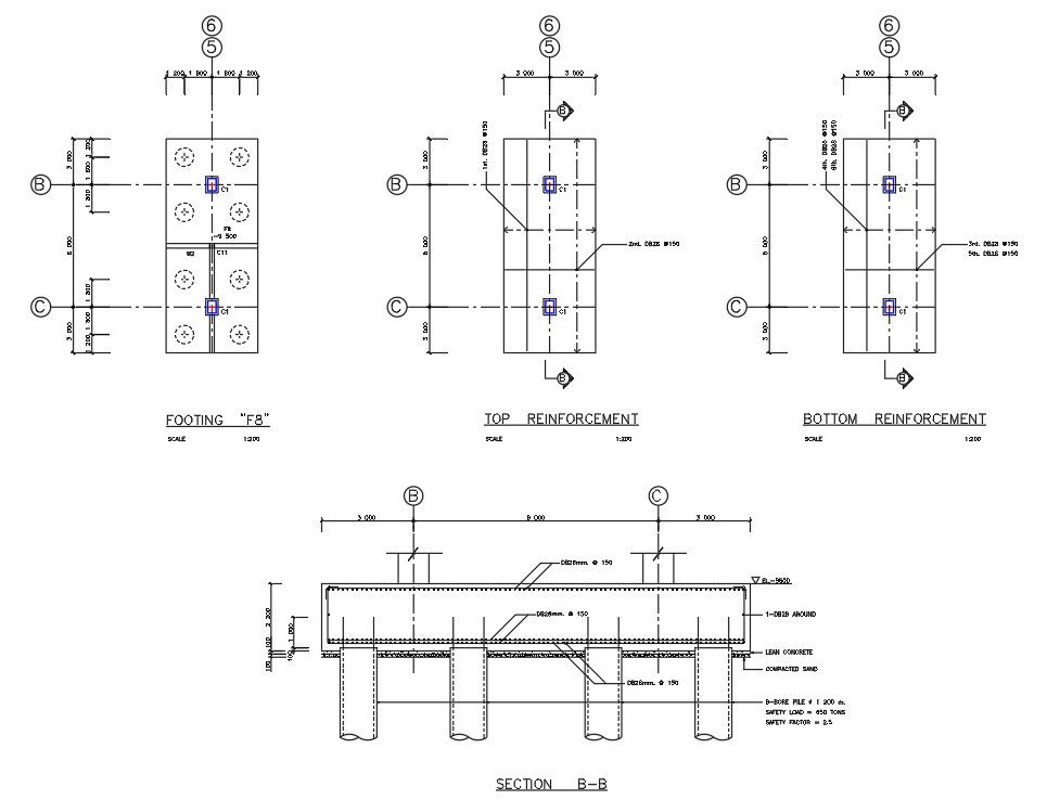 Footing details of hospital building is given in the 2D Autocad DWG Drawing file. Floor plan, top reinforcement, bottom reinforcement, footing and section details are given. In this drawing file Length, breadth and number and size of bar which is used for footing. Thank you for downloading the autocad file and other CAD program files from our cadbull website.