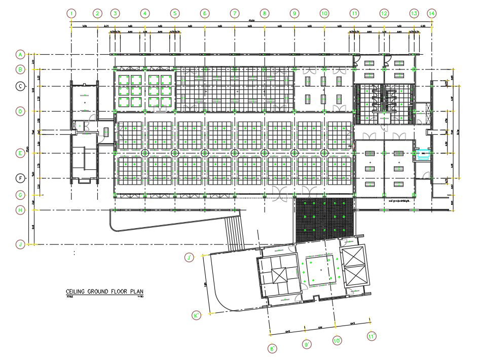 Ground floor plan of hospital ceiling has given into the Autocad DWG drawing file. Download the Autocad DWG drawing file.