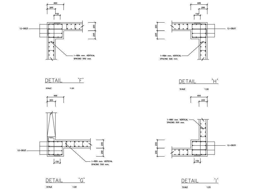 Vertical spacing Reinforcement section details are provided in this AutoCAD DWG file. In this file, beam, column, steel bar reinforcement, and wall sectional details were neatly shown. The section detail and the dimension were also are given clearly in this drawing. Download the AutoCAD DWG file now. Thanks for downloading the file and another CAD program from the cadbull.com website.