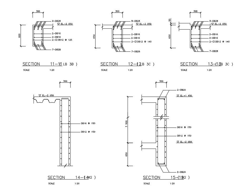 The Reinforcement typical section details are given in this AutoCAD DWG file. In this file, steel bar reinforcement, and wall sectional details were clearly given. The section detail and the dimension were also are given clearly in this drawing. Download the AutoCAD 2D DWG file now. Thanks for downloading the file and another CAD program from the cadbull.com website.
