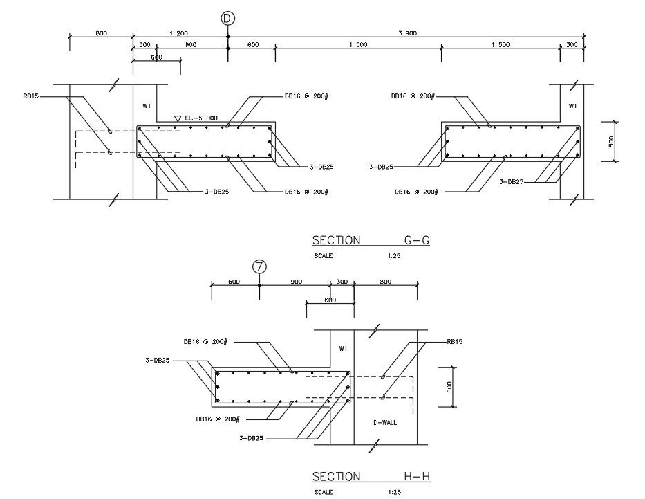 Column and the Beam Reinforcement section details are shown in this AutoCAD DWG file. In this file, beam, column, steel bar reinforcement, and wall sectional details were neatly shown. The section detail and the dimension were also are given clearly in this drawing. Download the AutoCAD DWG file now. Thanks for downloading the file and another CAD program from the cadbull.com website.