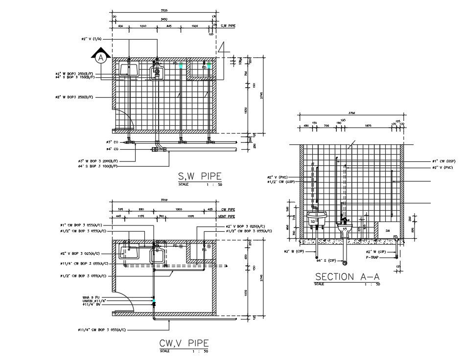 Toilet Plan And Section Drawing gave in this DWG File. layout plan and sectional elevation design with different side views which consists of Anodized Aluminum Molding Majolica coating Taps, Cement mortar, Soap dispenser, Taps, washbasin, toilet tub, and urinal with all dimension detail. also has sanitary ware installation drawing DWG file.